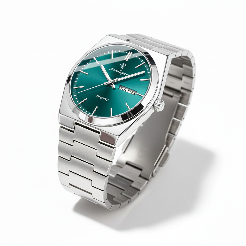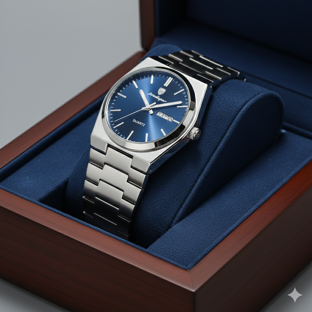 Aço inoxidável e design atemporal. Luxo no seu pulso.